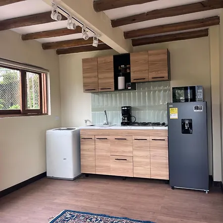 The kitchen amenities at the Villa de Leyva property feature a refrigerator and glassware, provided in an outdoor dining area. Casa San Pedro Restaurante is a restaurant serving European dishes only 1.1 km from the villa.